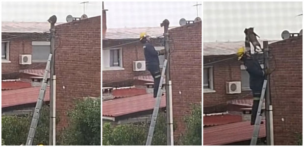 El animalito había subido a un poste y no podía bajar. Los uniformados fueron felicitados efusivamente en redes....